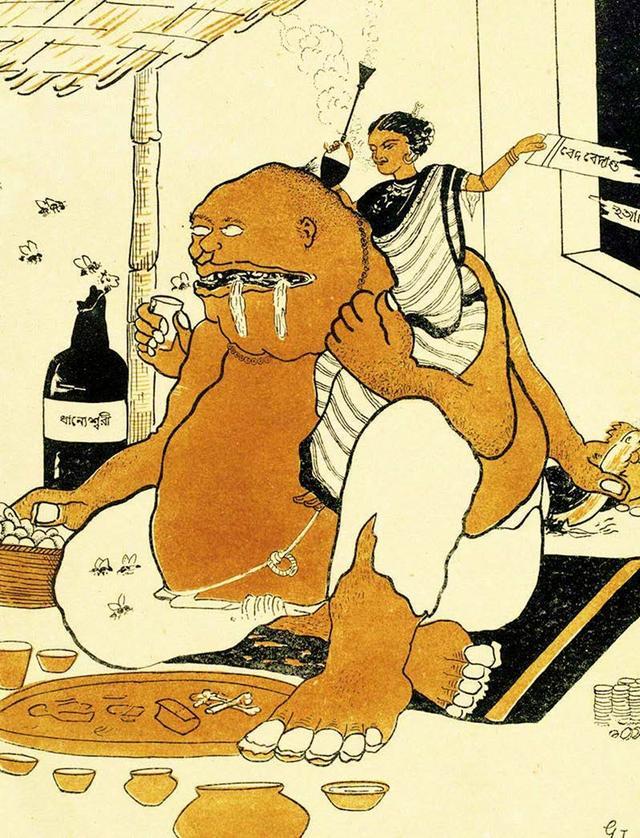 从20世纪20年代到1947年印度独立,艺术一直被三个有影响力的人物所主宰,诗人泰戈尔、阿姆丽塔·谢尔-吉尔和贾米尼·罗伊。他们都以自己独特的方式回应现代主义。然而,印度人对现代主义的第一反应是对立体主义的迷恋。立体主义已经成为世界上被模仿最广泛的艺术风格。这方面的先驱人物是阿巴宁德拉纳特·泰戈尔的兄弟加加宁德拉纳特·泰戈尔。他在1917年凭借一系列平版漫画声名大噪。自19世纪70年代以来,在孟加拉,漫画一直是艺术和文学手段用来揭露虚伪矫饰和嘲弄当代风尚的主要手段。讽刺的传统一直延续到20世纪,很少有人能比得上拥有冷静眼光的加加宁德拉纳特。