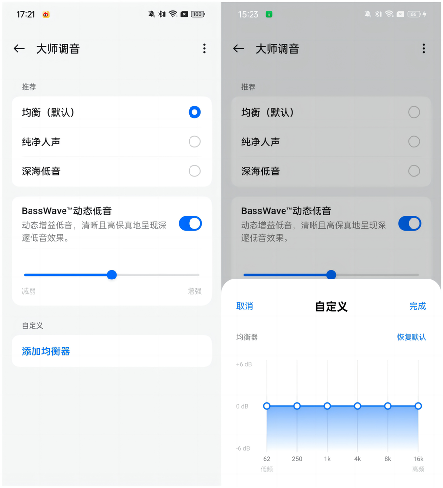一加 Buds 3还支持大师调音功能,内置均衡、纯净人声以及深海低音三种模式,不同的模式在音乐呈现风格上有所不同,用户还可以根据自己的进行均衡器的自定义设置。