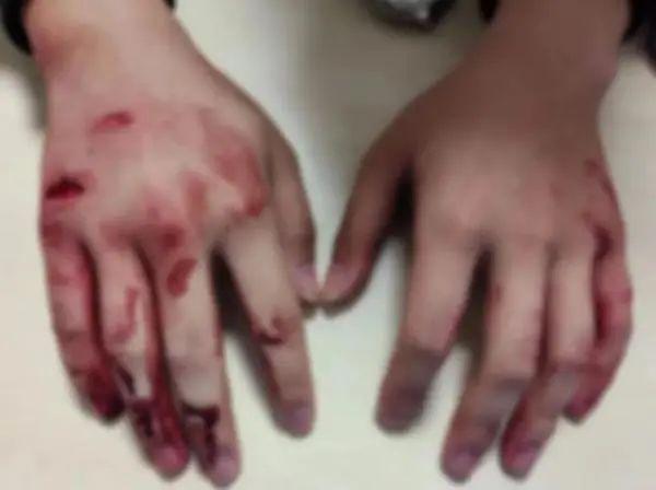 汤益鑫受伤的手。本文图均来自“平安鼎”微信公众号