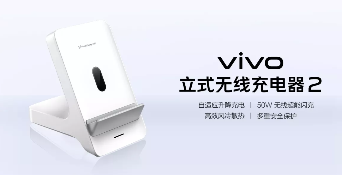 至于充电配置方面,vivo 50W 立式无线充电器支持了比较常规的 50W 无线充电功率,当然得搭配支持的 vivo 旗舰才行,搭配其他设备也就是走一半的 Qi 协议了。