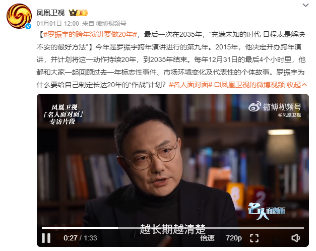 这是罗振宇公开制定的第三个长期目标。2022年12月,他许诺坚持十年的“60秒语音”如约下线;而到今年跨年,罗振宇要做“20年跨年演讲”的目标已完成近半。