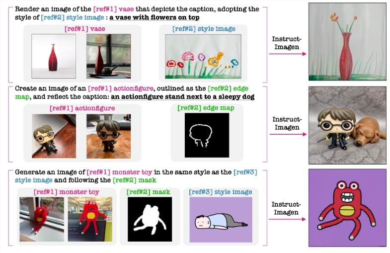 Instruct-Imagen是一个统一的模型,专门设计用于处理异构图像生成任务,它超越了各自领域的多项最先进技术。这意味着Instruct-Imagen不仅能够在已知任务上表现出色,还能推广到看不见的复杂任务,而无需进行任何临时设计。