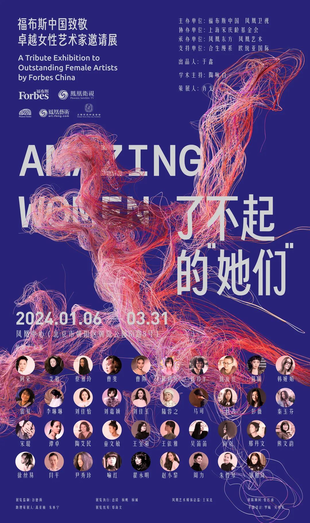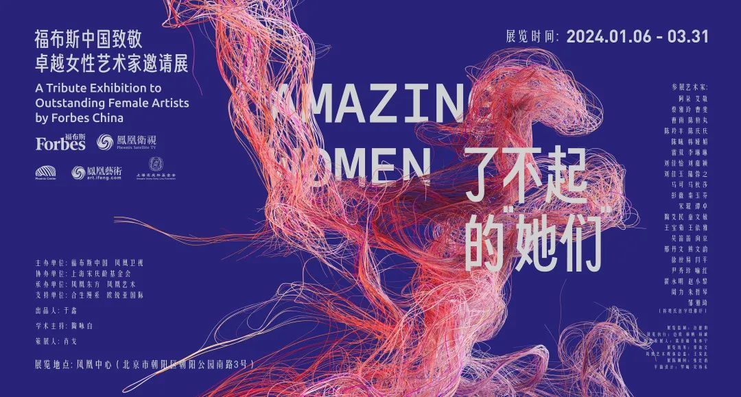 2024年1月6日至3月31日,由福布斯中国、凤凰卫视主办,上海宋庆龄基金会协办,凤凰东方与凤凰艺术承办,合生缦系、欧锐亚国际支持的“了不起的‘她们’——福布斯中国致敬 卓越女性艺术家邀请展” 将在北京凤凰中心开幕。