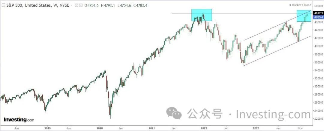 标普500指数周线图,来源:英为财情Investing.com