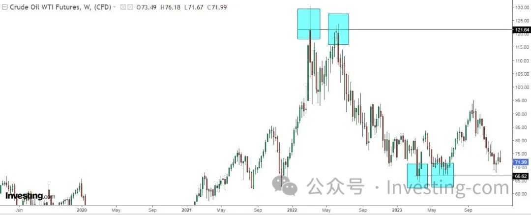 美国WTI原油周线图,来源:英为财情Investing.com