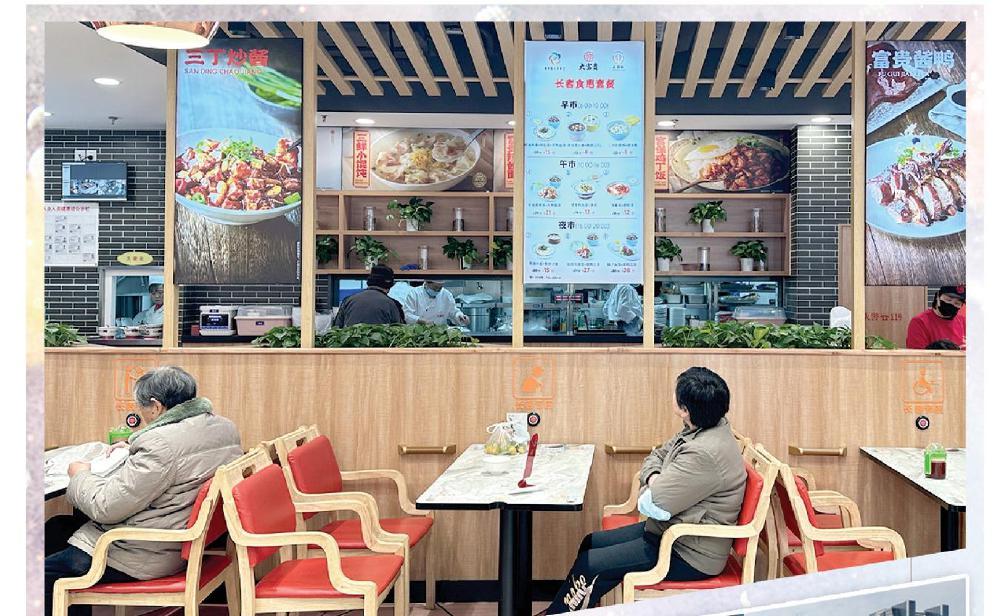 大富贵餐厅的长者食堂专区,桌椅经过适老化改造,早市、午市和晚市均有3款套餐供选择。