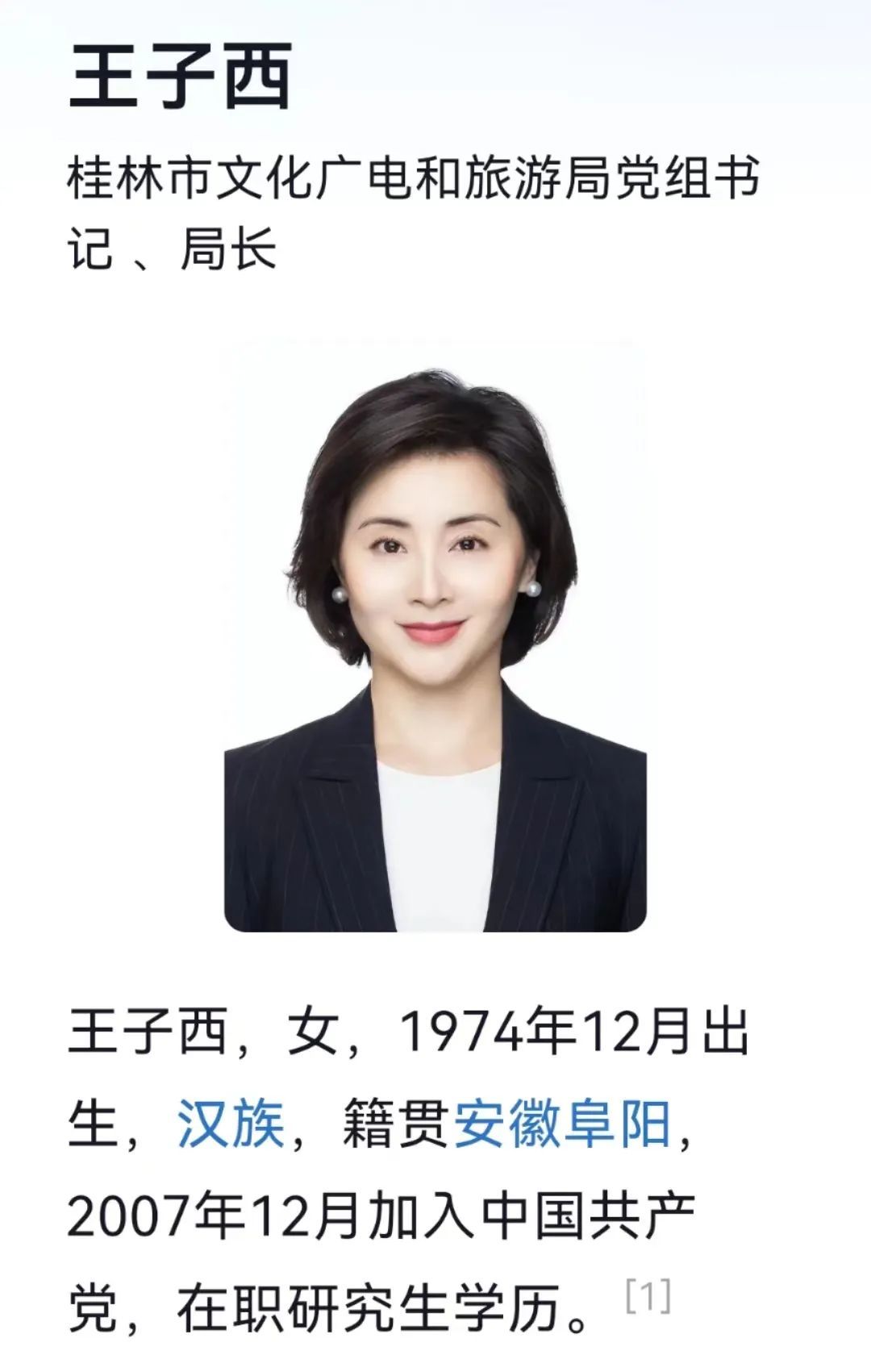 现任桂林市文化广电和旅游局党组书记 、局长,中共桂林市委员会宣传部副部长(兼)。