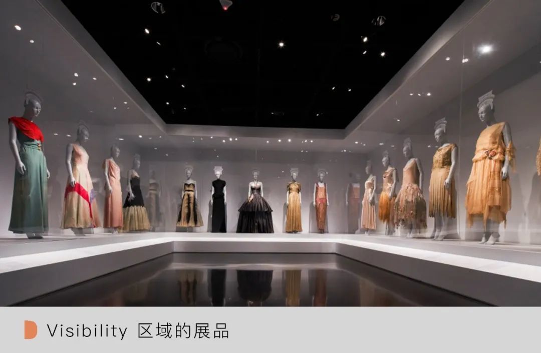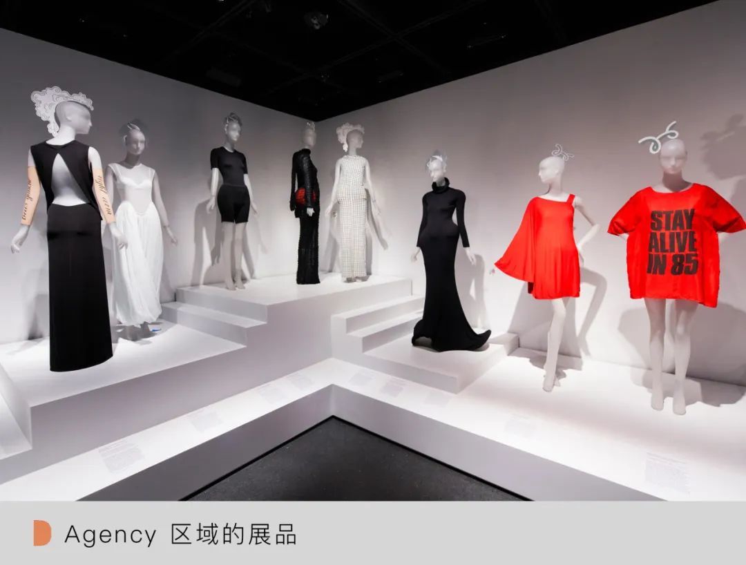该展览分为多个区域,其中主要区域包括 Anonymity、Visibility、Agency,Absence/Omission。以及其他较小展区:American Women、 Appropriating Menswear、the Boutique Generation、Reclaiming the Body、Empowerment Through Practice。其中,Anonymity 展区从视频幻灯片开始,将知名设计师与无数匿名设计师的作品穿插放映,旨在强调设计的“集体性质”。