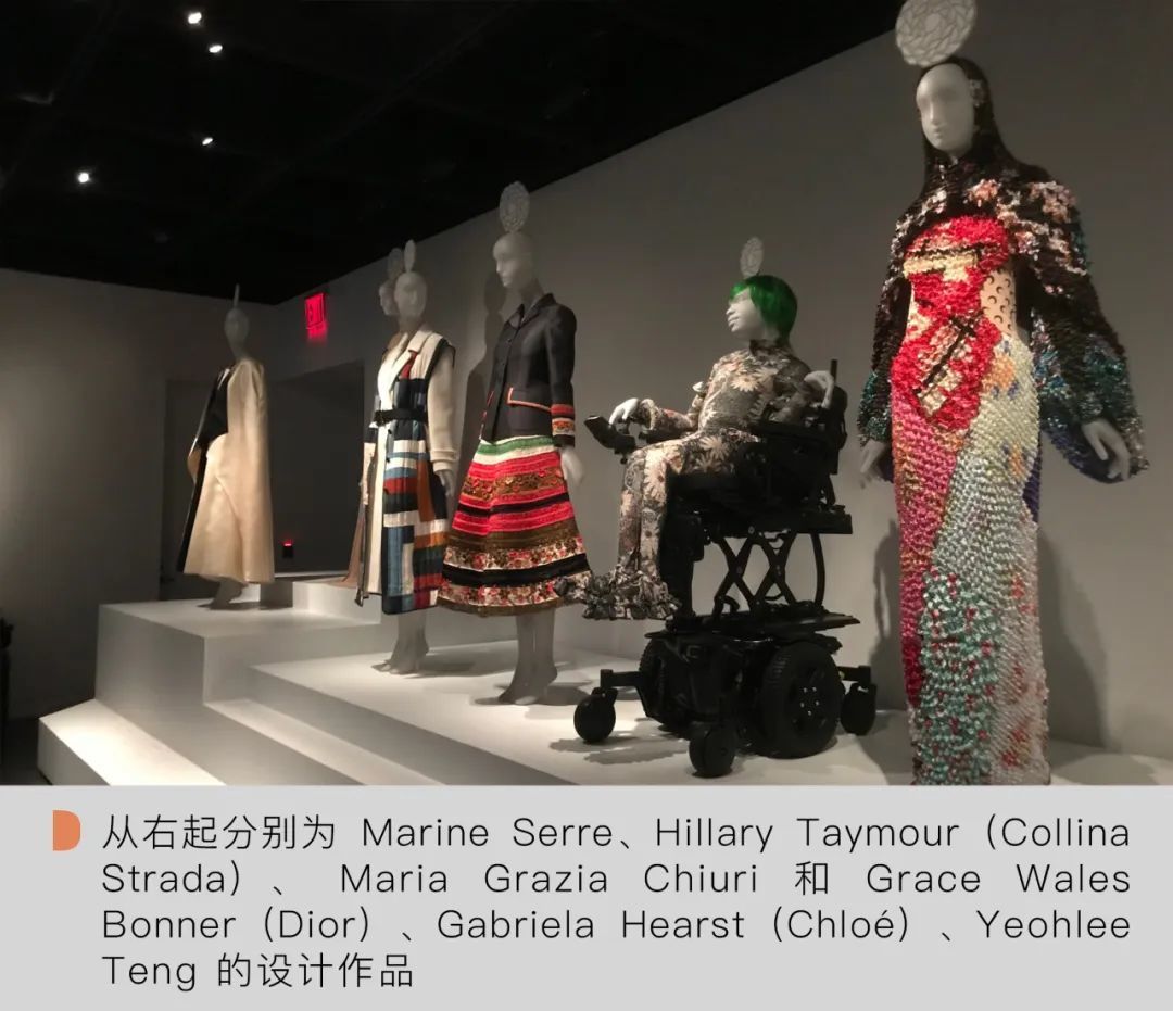 展出的重点之一在于强调行业的协作性质,因此,展览也呈现了众多品牌的合作作品。如 Gabriela Hearst 为 Chloé 设计的 2022 年秋季套装,其中融入了 Gee's Bend 绗缝师的作品。对此,Karen Van Godtsenhoven 解释道:“我们试图展示女性设计师的多样化作品。如果你从当代的角度来看待它,重要的是要认识到其历史轨迹、设计公司过去如何协作共创,以及我们如何以当代视角看待合作作品。”