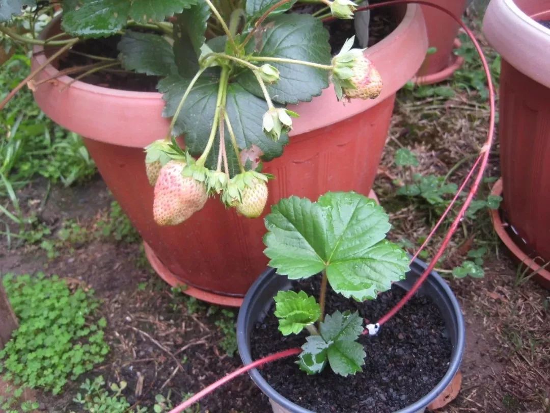 用一个有较好排水性的花盆来栽种就是不错的选择,每个花盆里,草莓苗不要种得太密集,如果是30厘米直径大小的花盆,就可以种上两三株,如果花盆太小就只能种一株草莓。