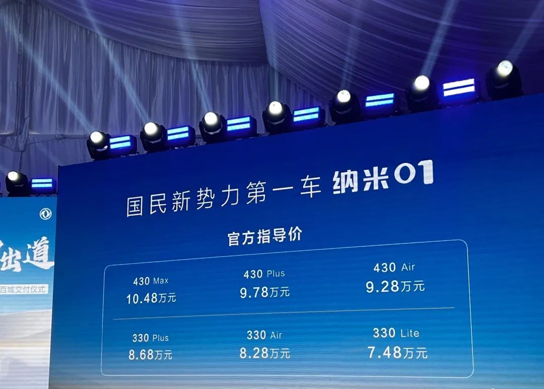 1月7日,东风纳米品牌首款车型——东风纳米01正式上市。新车共推出6款车型,售价区间为7.48-10.48万元。