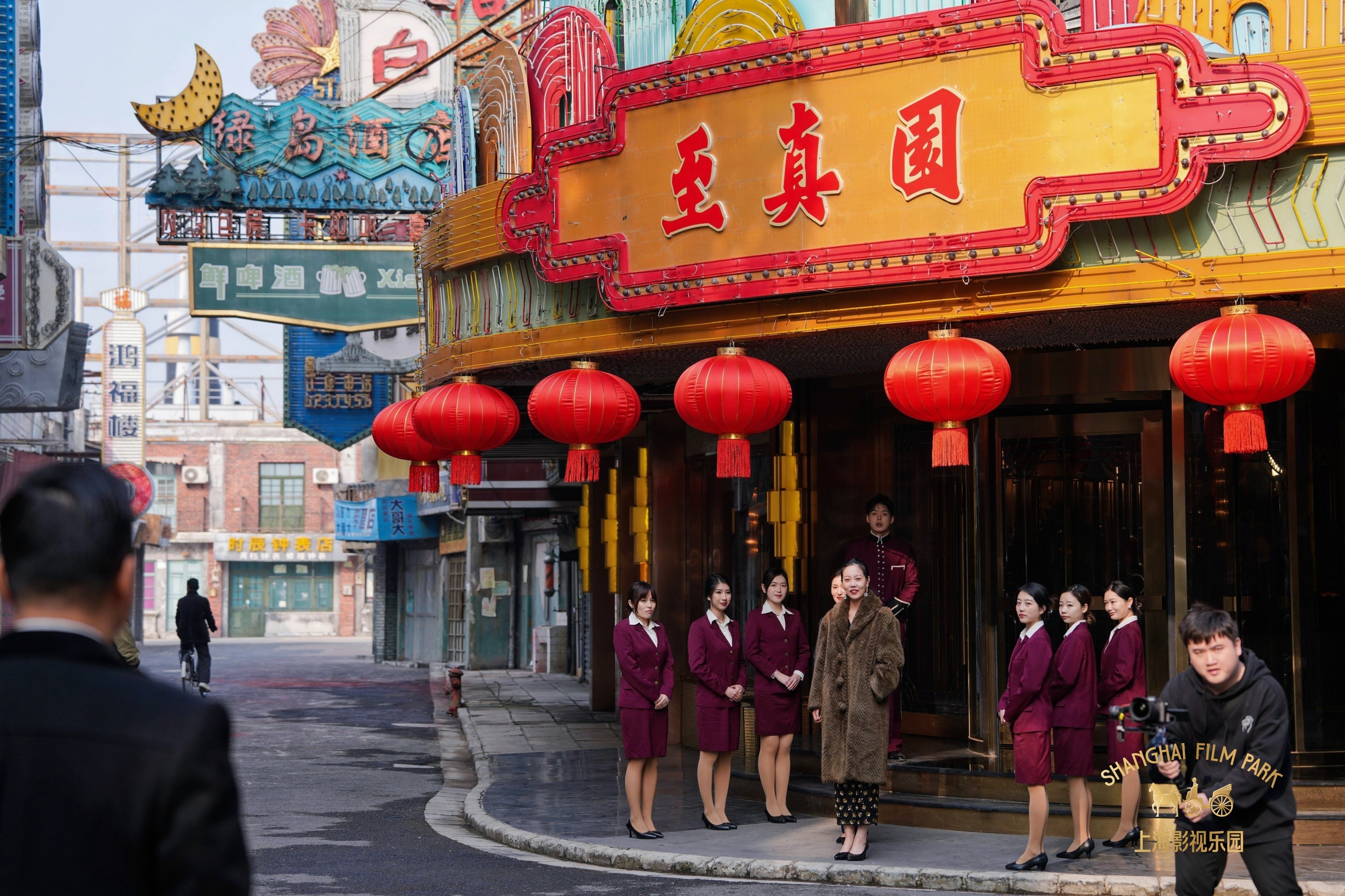 作为“黄河路百晓生”,程亮对至真园的一幕幕如数家珍:李李、玲子两位老板娘之间的对峙是在二楼右边区域拍的,导演王家卫在中间靠近栏杆的位置,左边是群演们的休息区。2023年春节,车墩影视基地的“黄河路”灯火通明,程亮记得拍年初五“黄河路”上放炮仗的戏时,鞭炮响了整晚,“像过了很多次年一样”。