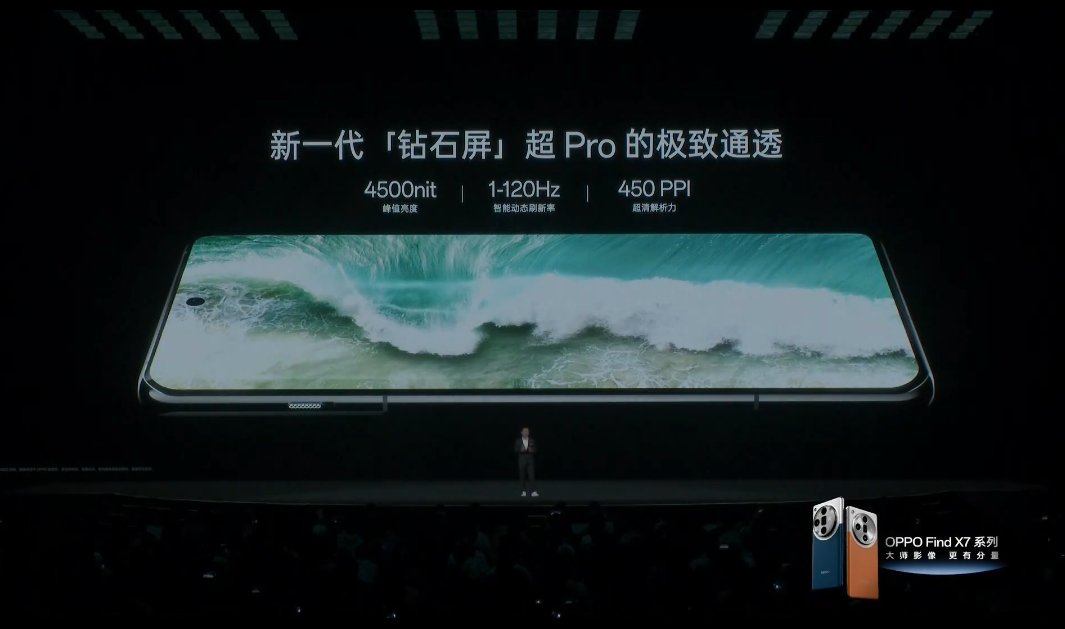 这次在屏幕上面,OPPO Find X7 可以说是全面越级,搭载了一块超通透的钻石屏,亮度达到了超高的4500nit,而且通过了 Displaymate A+认证,显示效果非常出色。这块屏幕的分辨率为2780x1264,像素密度达到了450PPI,支持120Hz 刷新率,还支持自由动态刷新率调节。
