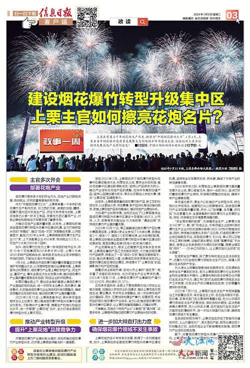 上栗县有着上千年的花炮生产历史,被誉为“中国烟花爆竹之乡”。1月4日,上栗县召开烟花爆竹高质量发展暨生态环境保护专项整治大会。该会议对上栗今后持续发展花炮产业有何启发?