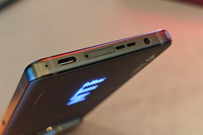 ROG游戏手机8 Pro的中框则改为平面直角,延续了侧边中置USB-C接口设计;后盖四边缘均经过了曲面处理,左右两侧的弯曲弧度似乎要比上下边更大,视觉上会更加纤薄,手感比其他的电竞游戏手机提升不少。