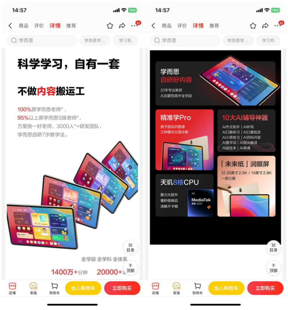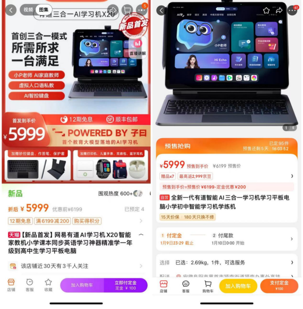 和厂商布局大模型学习机相对激进构成矛盾的是,市面上大模型学习机销量堪忧。网易有道发布会结束的24小时内,其天猫和京东官方旗舰店X20预定人数分别为4人和95人,双平台订单量仅在百台。