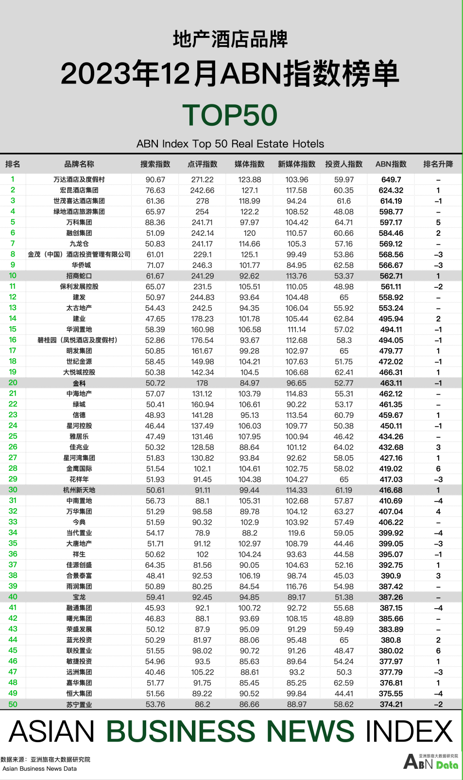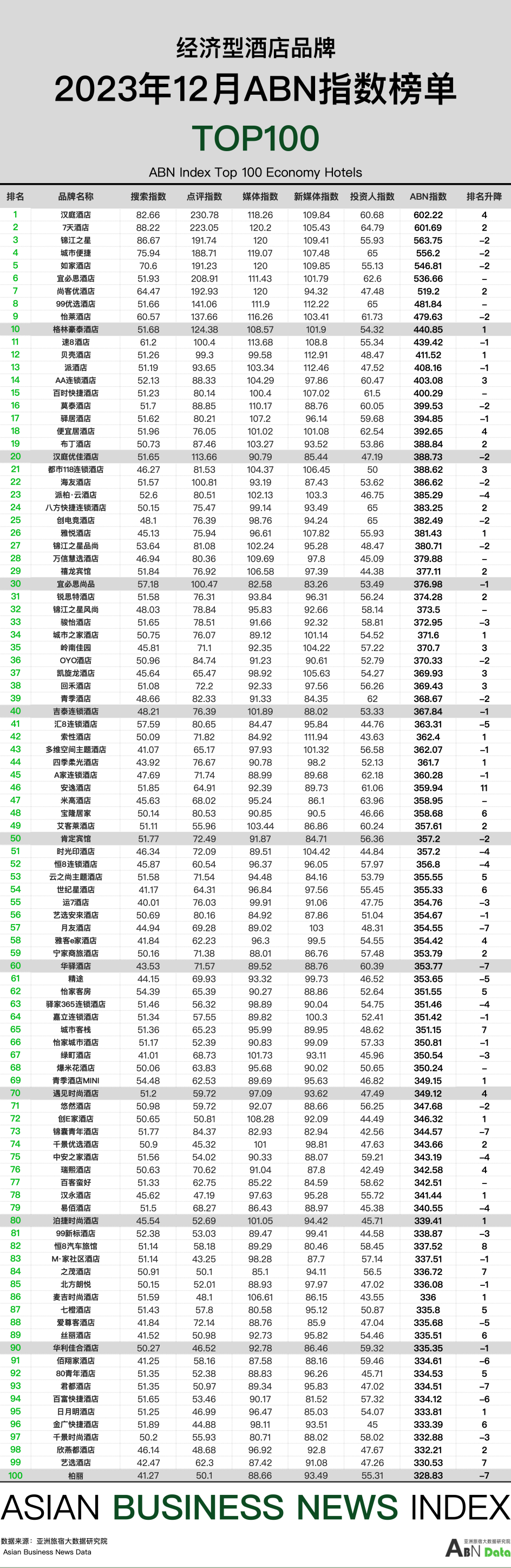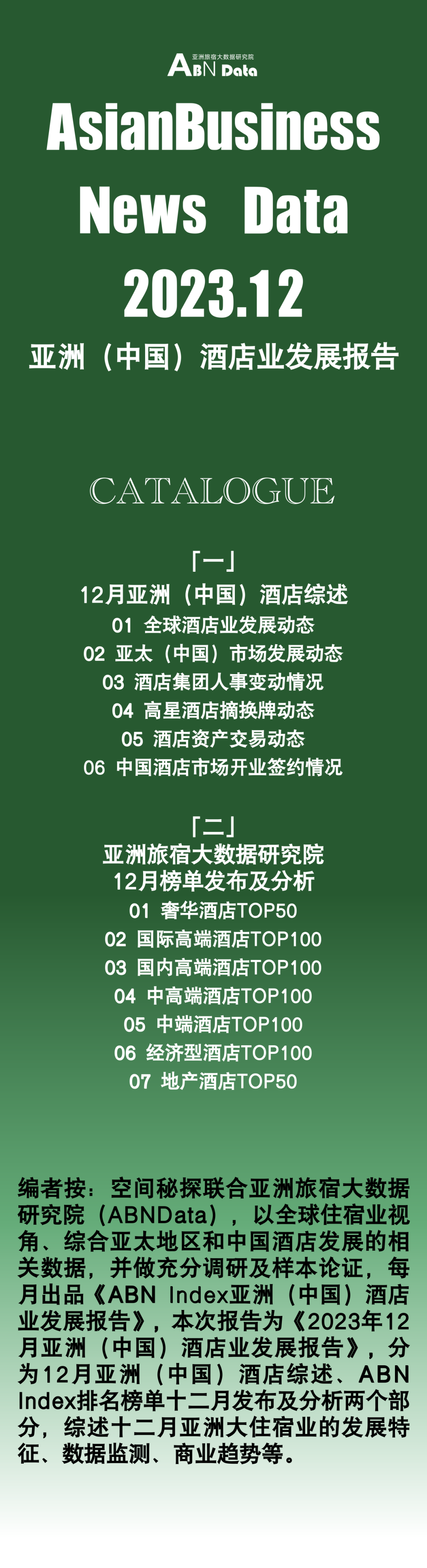 据亚洲旅宿大数据研究院(ABNData)监测品牌统计,12月新开业酒店253家,环比涨幅7.66%。