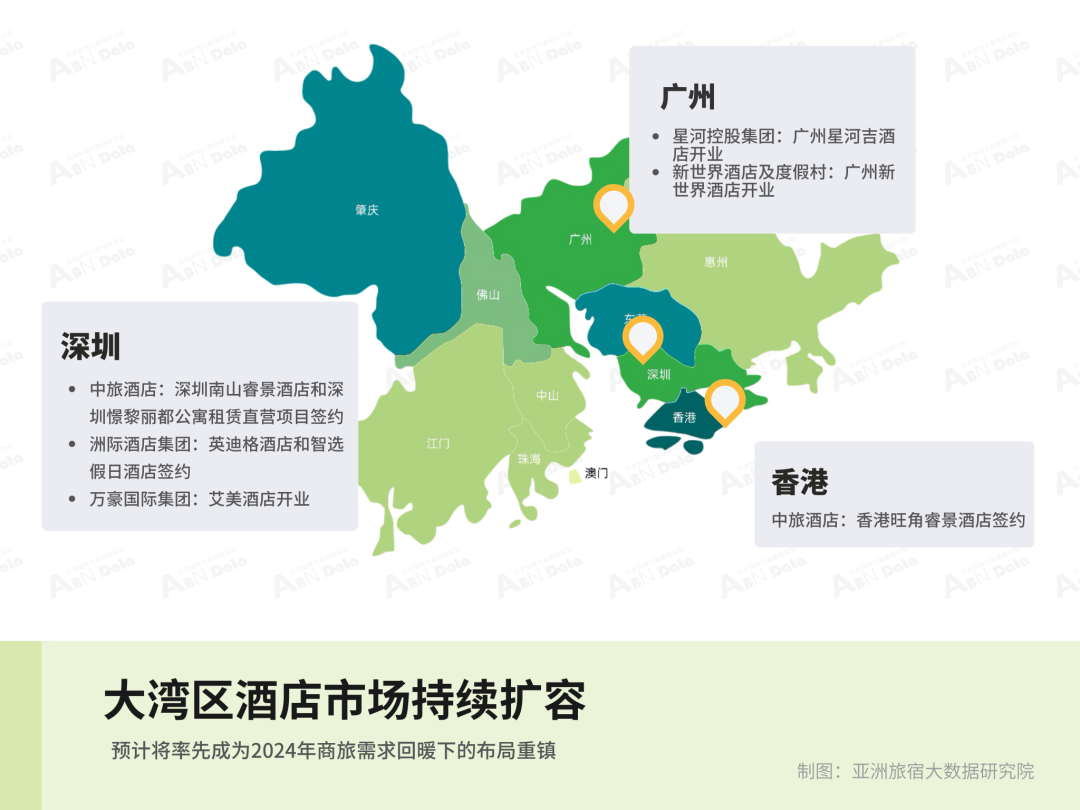 大湾区酒店市场持续扩容 | 12月,粤港澳大湾区高端酒店市场迎来海内外品牌的接连落子,从战略部署层面来看,该区域市场将率先成为2024年商旅需求回暖下的布局重镇。