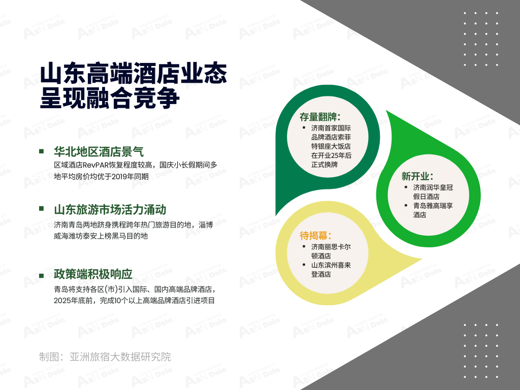 山东高端酒店业态呈现融合竞争|12月,山东高端酒店市场出现新老国际品牌的交替。首先是济南索菲特银座大饭店在开业25年后正式换牌,作为济南首家国际酒店,其在1999年开业之后正式打开了国际高端酒店接连落户的局面。其次,省内接连迎来济南润华皇冠假日酒店和青岛雅高瑞享酒店的开业,以及新签约项目山东滨州喜来登酒店。在2025年,预计还将迎来济南丽思卡尔顿酒店的启幕,并将成为山东首家、国内第16家,填补奢华市场的空白。