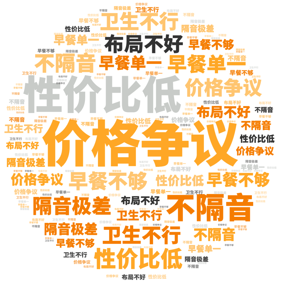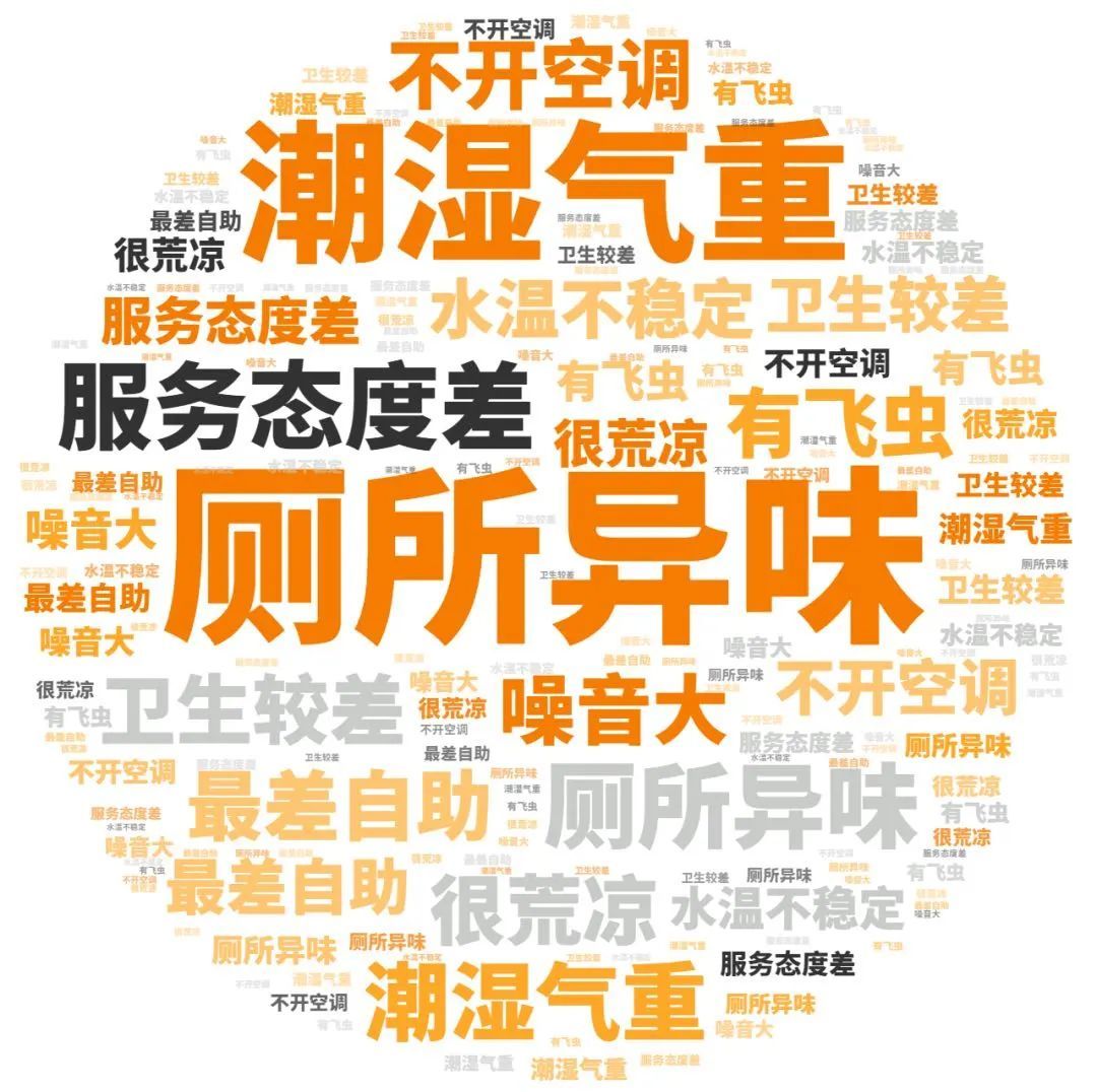 点评指数:经济型酒店点评指数平均得分达80.1分,较上月有较为明显的下跌,且并未有300分品牌出现,好评维度平均是差评维度的0.6倍。好评关键词主要是经济型酒店的交通便利、设施较新、智能化等方面。差评关键词主要集中在服务态度差、床品不好、卫生问题等方面。