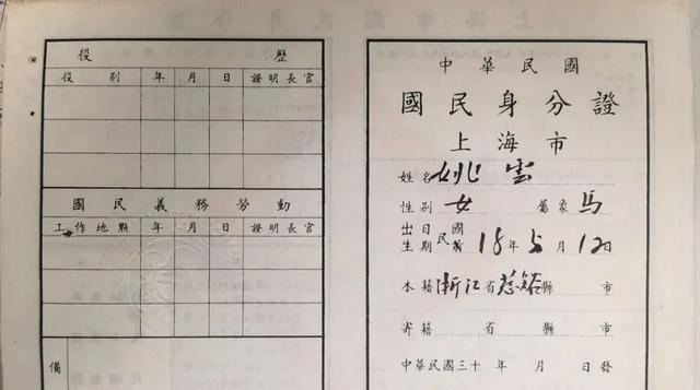 姚云在复旦读书时申领的国民身分证内页(复旦档案馆藏)