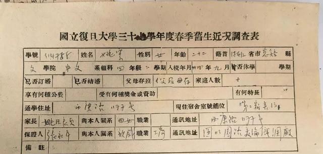 《旧生近况调查表》(复旦档案馆藏)