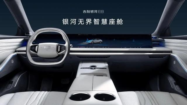 三是智能化水平。银河E8的座舱一进去可能会很“唬人”,中控台会感觉把你整个视线都“包裹”,这就是45英寸8K无界智慧屏,吉利说是目前汽车中“最大、最清晰”的中控屏,这的确能讨好喜欢游戏、追剧、看大片的年轻人。关于这个屏,淦家阅讲了半天,包括分辨率、炫光率、反射率等,总之科技水平很高,大家可以体验,这里不再赘述。