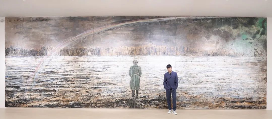 周杰伦闯荡于所有他感兴趣而具有挑战性的领域。这就是他为什么会很喜欢安塞姆·基弗的这幅画,在展出的这幅巨大尺度的绘画中,画中人物背向观者,像是德国艺术史中经典的弗里德里希“雾海中的漫游者”的图式。它似乎在表达一种吞吐万象的野心,一种哲学意义上的“上升”的状态,一种张望世界与远方,并且拥抱万物的胸怀。