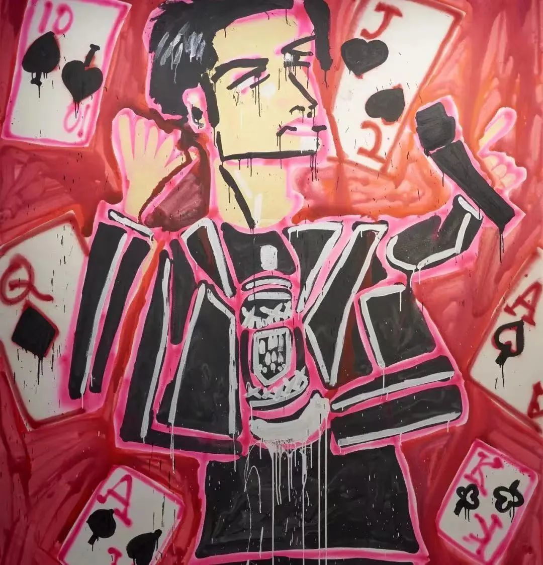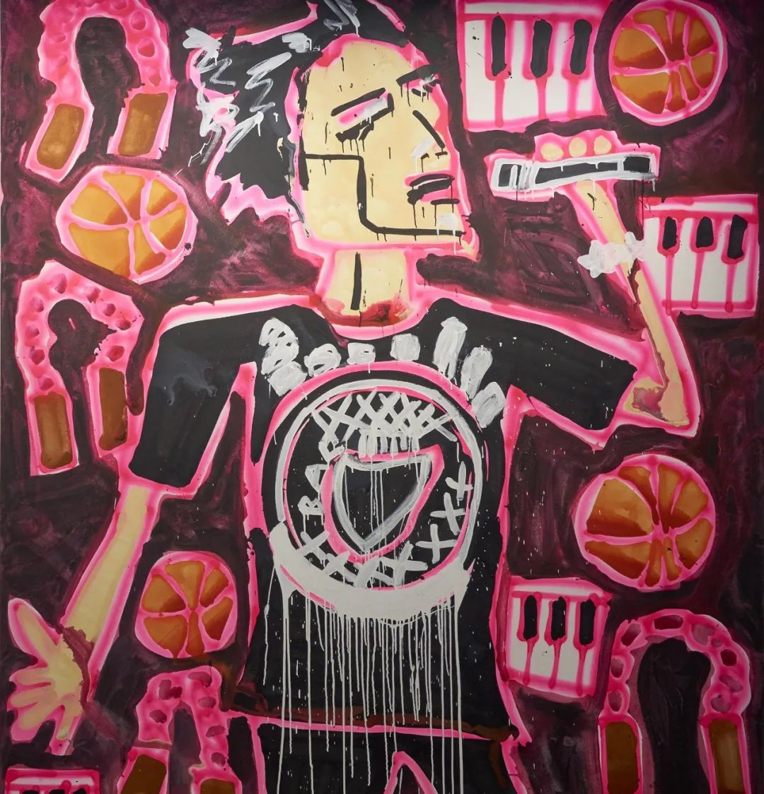 凯瑟琳·伯恩哈特曾为周杰伦创作过两件作品。在这些作品中,她巧妙地将周杰伦众所周知的三个符号:双节棍、篮球和钢琴,自由地融合在一起,用浓郁的粉红色渲染整个画面,仿佛创造了一片粉色的海洋。伯恩哈特擅长运用日常物品创作,将它们重新演绎,她的作品充满了拿来主义的精神,因此她被视为当今世界上最具活力的艺术家之一。