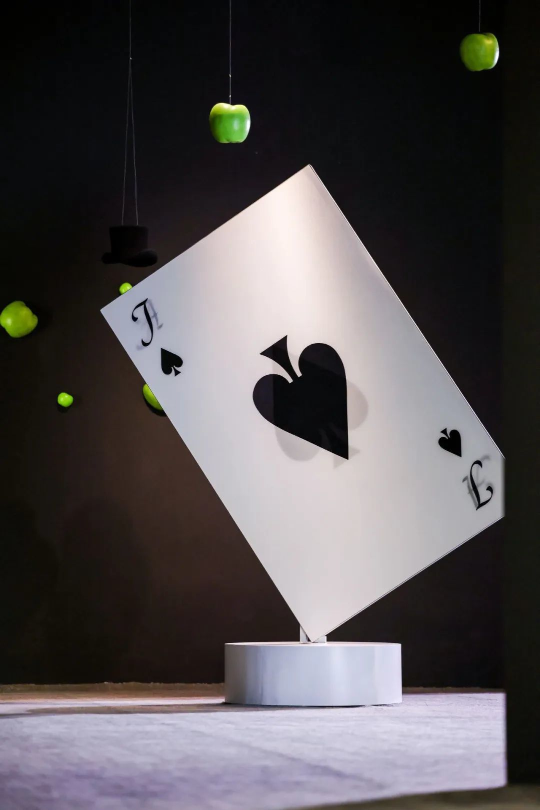所有这些不可预测性的事物都像艺术,正如有人曾说过,艺术本质上也是一种“炼金术”——一处现代世界的灵韵犹存的遗迹,艺术中拥有周杰伦最着迷的世界的神秘与不可知。展厅可以见到一张巨大的扑克牌,随着光影的角度变换,它上面的字符会在J和A之间变化。