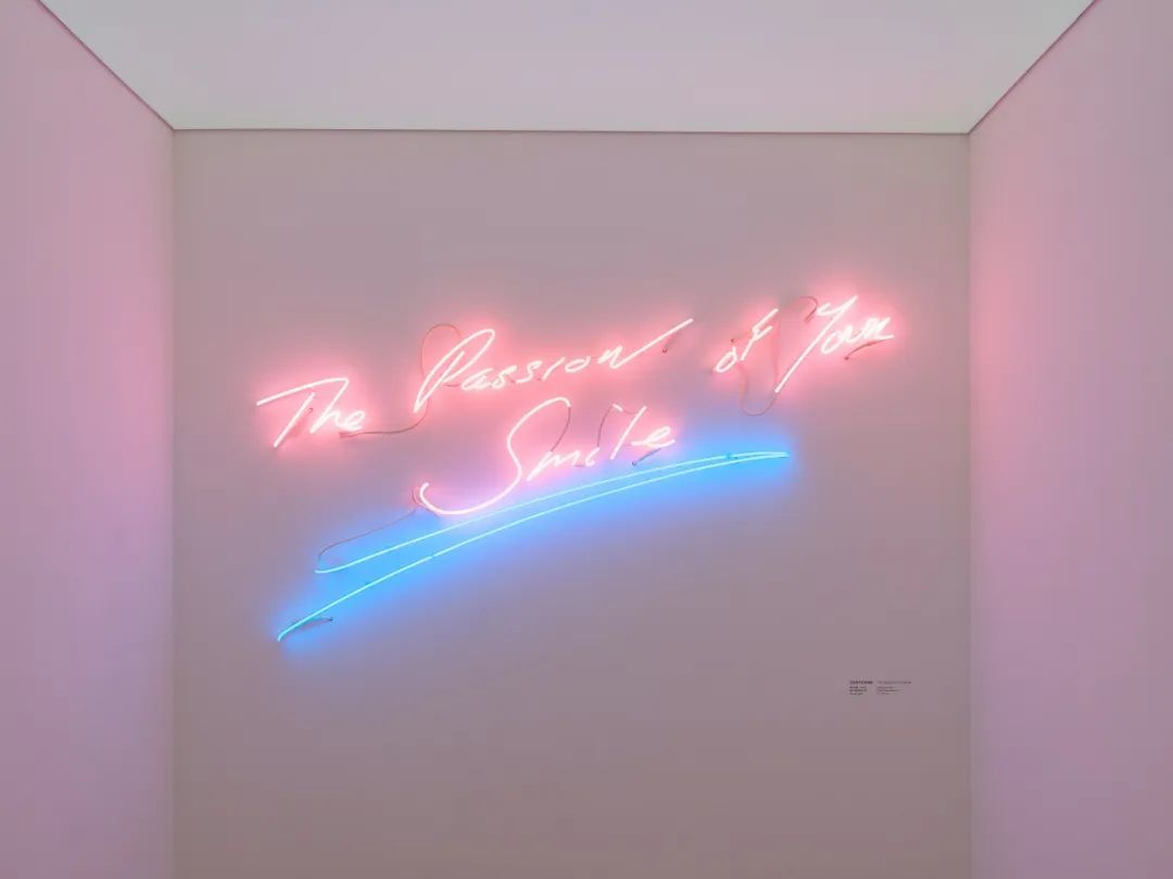 ▲翠西·艾敏《你的微笑充满激情》,2013 年,粉色与蓝色霓虹灯管,190 x 83.3 厘米