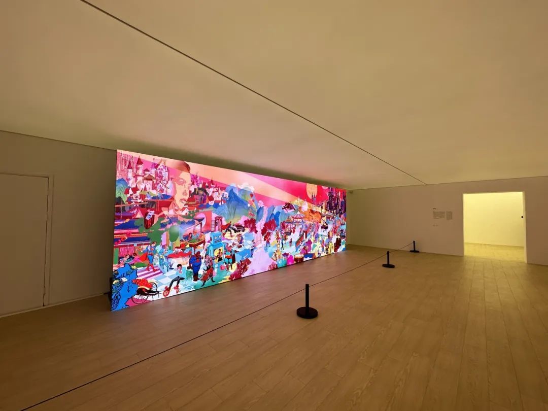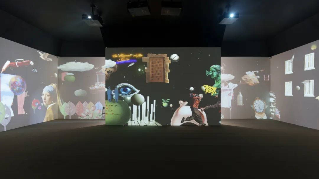 ▲展览入口处巨幕影像投影呈现多种“杰”式艺术元素;《艺起“杰”作》展览现场,©WEF EEL ART
