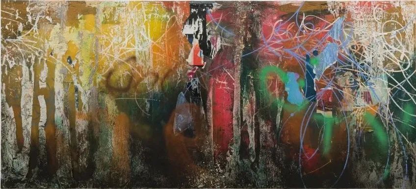 ▲常谈与漫步的情与境, 何塞•帕拉,木板混合媒材, 152.4 x 335.28 cm