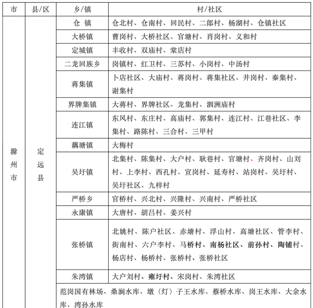 一、自本通告发布之日起至2028年12月31日,江巷灌区工程占地和淹没区征地范围为停止新增建设项目并控制人口迁入区域(以下简称“控制区”)。控制区涉及:合肥市肥东县4个乡镇23个社区,滁州市定远县13个乡镇84个行政村,共计17个乡镇107个行政村(社区),以及定远县范岗国有林场和蔡桥水库等6座国有水库。