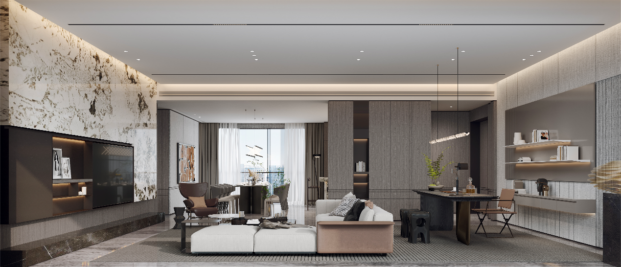 在空间设计上,高达10.8米的入户大堂,私家电梯厅入户的归家动线,彰显了尊崇的归家礼遇和仪式感。而居所内的双客厅设计,也追求打破空间界限,强化开放式生活场景。独立的中西厨空间设置,在注重使用功能多元化的同时,也更好增进家人的场景互动。在这里,广府藏品级人居生活风尚灿烂绽放,以无尽雅致的魅力,打动每一位居者的灵魂。