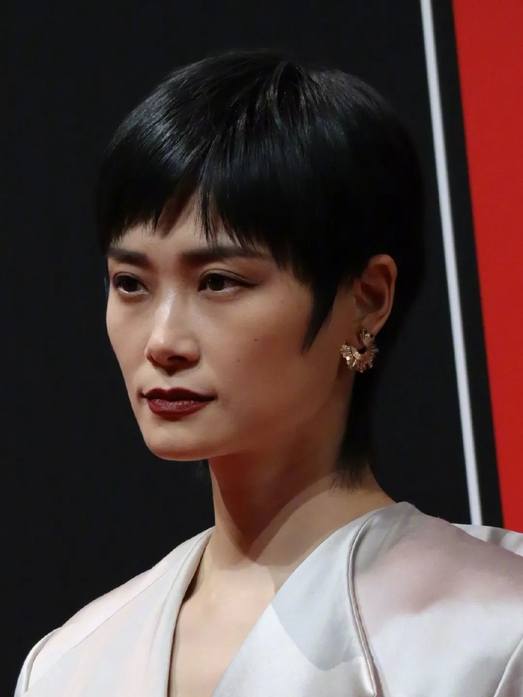 周冬雨的皮肤状态一直经得起怼脸镜头的考验,皮肤好到仿佛自带修图效果,因此她的红毯妆容都主打轻薄贴服,妆感不强。