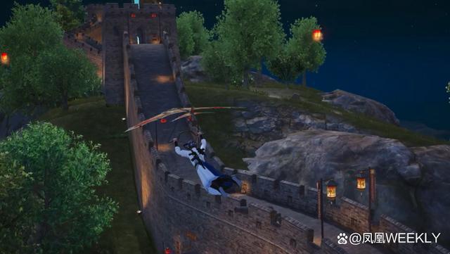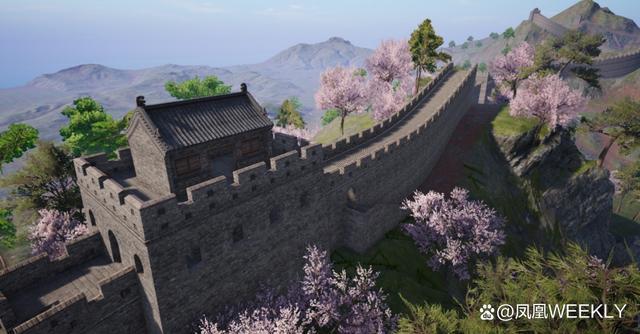 如果你来到游戏的绿洲世界,可以看到依山而建、横跨整个地图的万里长城。这片区域美工精致,并采用了写实的手法,还原了“喜峰口西潘家口长城”等现实长城标志性选段。