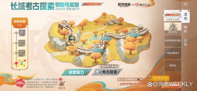 在热度加持下,《和平精英》于1月5日至1月12日期间,与中国文物保护基金会、北京市文物局与腾讯公益在游戏内开启“长城考古探索·领称号奖励”的主题活动。玩家可以通过解锁知识点完成当日任务获取小红花,累计收集4朵小红花即可领取“长城守护者”称号。同时,全服累计捐赠3000万朵小红花,玩家可领取一枚腾讯公益徽章,腾讯基金会也将出资助力箭扣五期长城保护修缮相关公益项目,真正将游戏落实到公益保护上来。