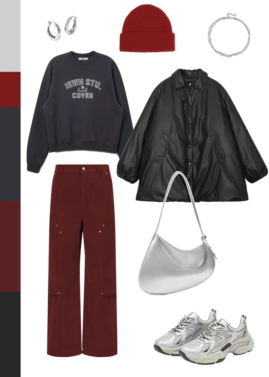 我把高饱和度的颜色放在了下装上,只在帽子上小面积点缀红色,相对没有那么挑人。