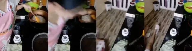 事发当天,宾波恩穿着粉色围裙,正在家里开直播做饭。