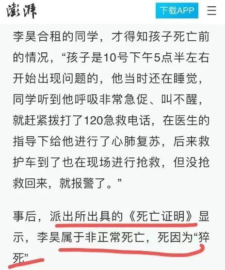 入睡后,他突然呼吸急促,室友随即拨打了120,可还是未逃过死神的魔爪。