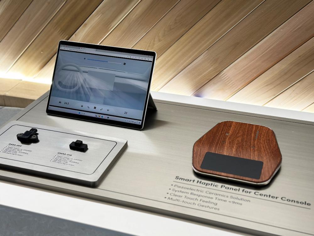 歌尔已于2023年发布两代应用于车载AR-HUD的PGU模组。本届CES,歌尔股份则推出应用于AR-HUD的自由曲面镜及冷光镜,自由曲面镜具有大尺寸、高精度、高可靠性的优点,可有效保证AR-HUD成像效果及量产质量;冷光镜所使用的红外截止膜,采用歌尔光学自主研发的镀膜工艺,可减少阳光倒灌风险。此外,拥有业内领先压电触压反馈技术的歌尔自研车载中控台首次亮相,厚度更低、防误触效果更好、反馈触感真实,解决车载触控振动反馈方案振动拖沓、外观廉价、设计复杂、易误触等问题。值得一提的是,歌尔还针对汽车噪声、振动与声振粗糙度(NVH)等问题推出座舱主动降噪方案(RNC),降低车内噪声的同时还可减轻车辆总重,进一步提高车辆驾驶、乘坐的舒适性及安全性。