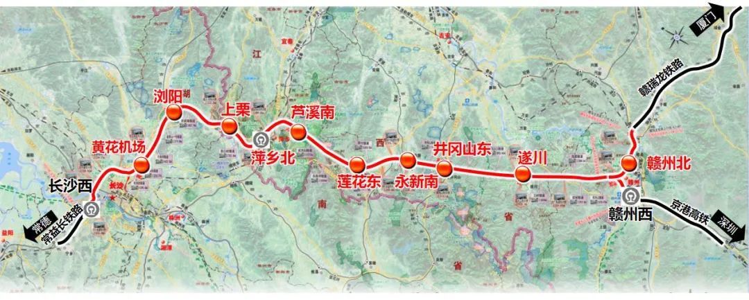 长沙至赣州高速铁路(简称“长赣铁路”)是国家《中长期铁路网规划》中“八纵八横”高速铁路网之一的渝长厦(重庆-长沙-厦门)通道的重要组成部分,位于湖南省东部和江西省西南部,西起湖南省长沙市长沙西站在建常益长铁路,向东南途经江西省萍乡市、吉安市境内,至终点赣州市,在赣县站东端接赣瑞龙铁路。长赣铁路全线长429.5公里,全线设站11座。长赣铁路在萍乡境内设萍乡北站、上栗站、芦溪南站、莲花东站,莲花东站站房建筑规模按5400平方米控制。长赣铁路其余车站均已陆续发布建筑设计招标公告。