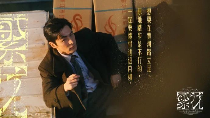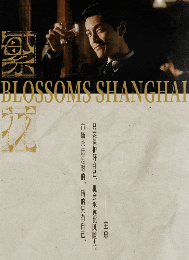 我们在海报和剧集场景里都能看到一种高雅精致的金色笼罩了整个故事:当时灯红酒绿的繁华上海与主角阿宝成为“宝总”的风云时光。虽说是电视剧,我们在预告片中还是能够看到浓郁的电影色调。胡歌饰演的阿宝也仍然保有了王家卫镜头下孤岛式人物的特点。