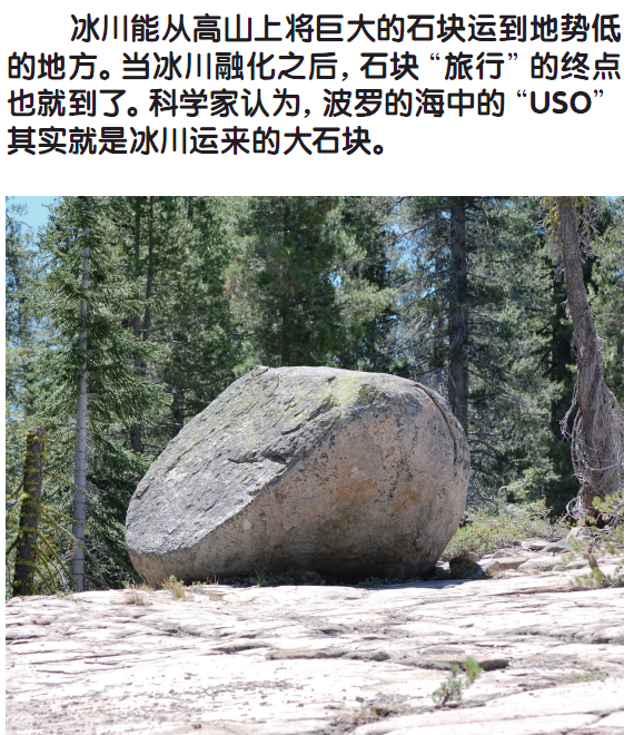 那么,波罗的海的这段地质历史与海底的圆形物体有什么关系呢?这得从冰期时的冰川说起。冰川是一个力大无比的搬运工,受到重力的影响,高处的冰川会向河流一样,向地势低的地方移动。冰川移动时也没“闲着”,它们侵蚀遇到的山体岩壁,使岩壁上的岩石掉落,并裹挟着这些石块一起移动,冰川在哪里融化,这些石块也就在哪里停下,它们被称为冰川飘砾。科学家们认为,波罗的海里的那块圆形巨石应该就是被冰川塑造并被带到现在的位置的。可能有人会质疑,冰川能带着一块直径60米的石块移动?不要小看了冰川的运输能力,在四川彭州市葛仙山就有一块巨型的冰川飘砾,据测量,这块飘砾长约9千米、宽约4千米,被认为是世界上最大的冰川飘砾。所以,从陆地运一块直径60米的石块,对冰川来说不是难事。