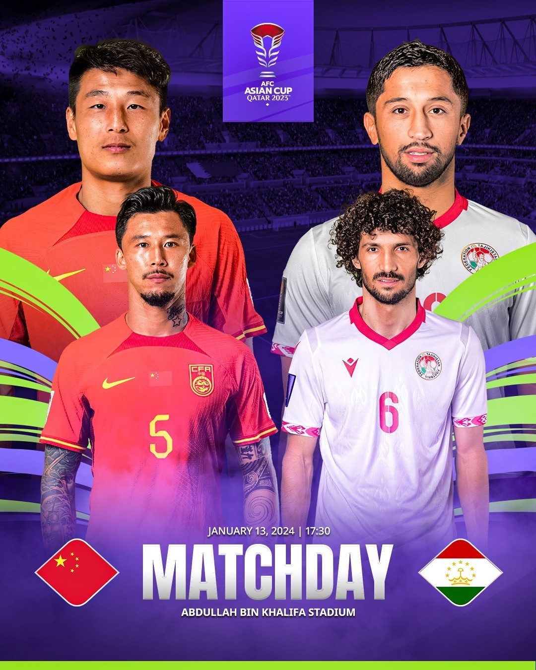 亚洲杯首战国足将对阵塔吉克斯坦,历史上国足共与塔吉克斯坦有过5次交手,成绩为4胜1平。