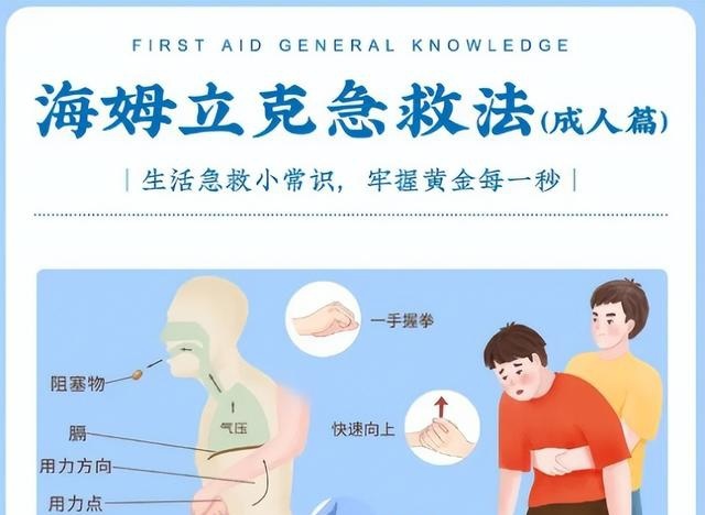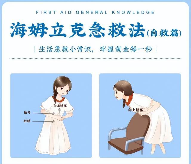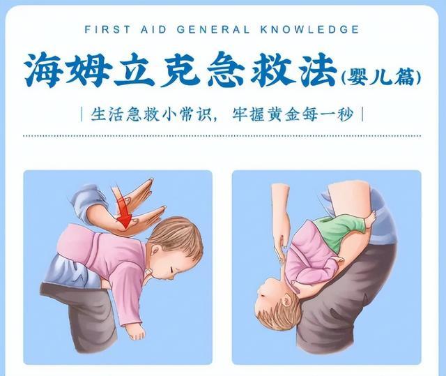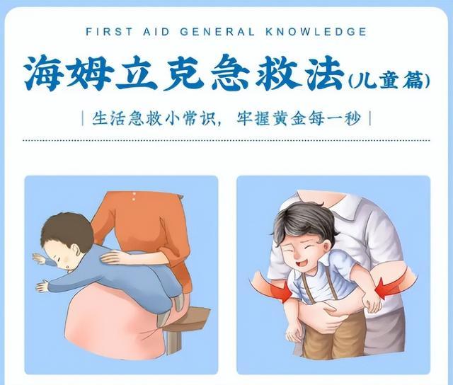 从背后环住孩子,手放在窒息者的腹部(胸骨以下、肚脐以上),双手握拳,拳心向内向上挤压窒息者的腹部,注意挤压要快速有力,可以迅速挤压5次看窒息者。