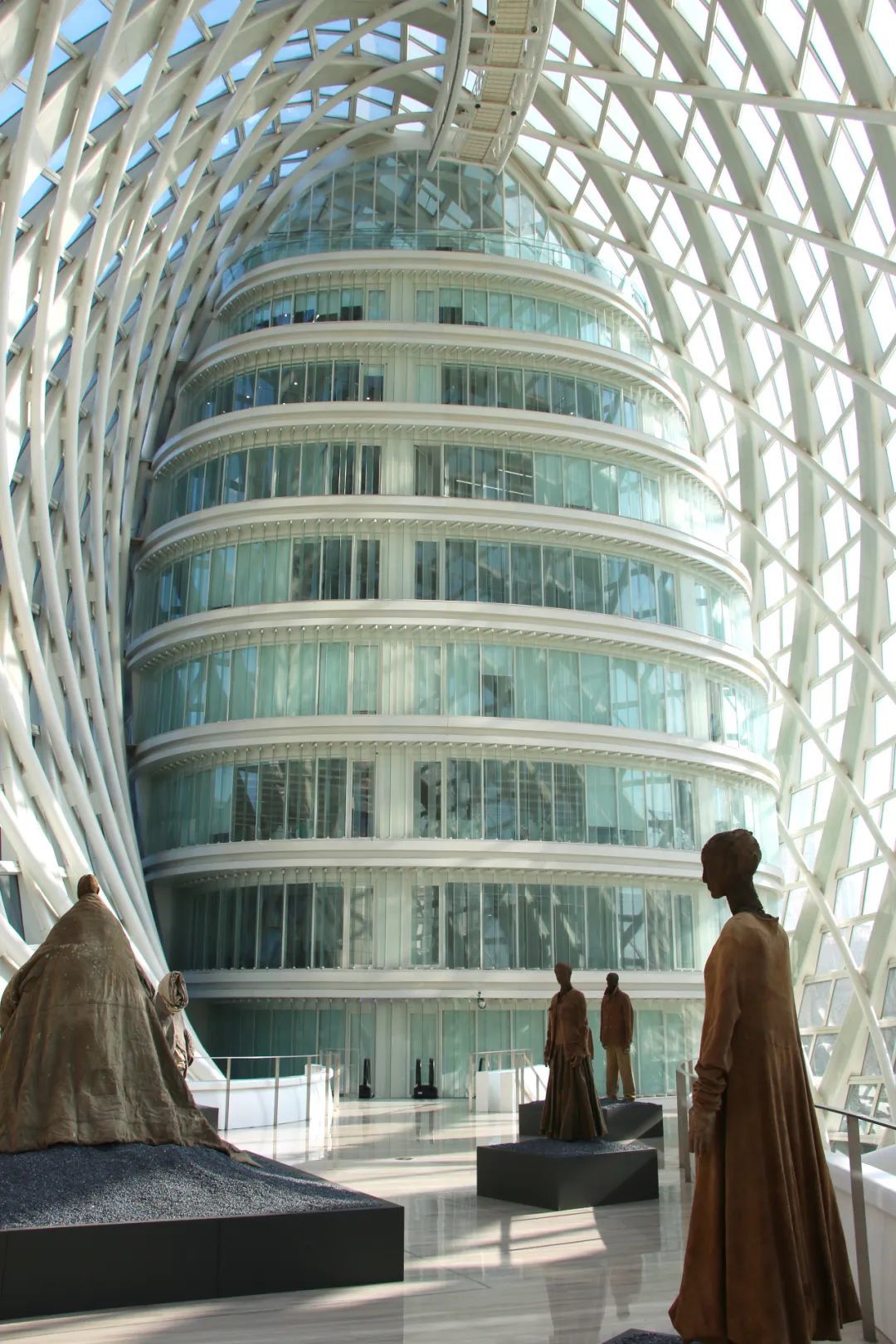 本次展览在整个凤凰中心的空间之中都有所呈现,共分为二层内环、二层外环、四层梧桐阁、五层展区、梦之桥和地下一层多个展区。在莫比乌斯环的建筑主体内,当代女性艺术家们的灵光弥散在各个角落,呈现出一种无界和流动的美学体验。展品巧妙地与空间的连续性和环形结构相融合,每件作品都仿佛在讲述自己的故事,艺术家们也与观众进行着沉浸式的对话。走进这个艺术的迷宫,每一步都充满了惊喜和启发,引发对女性角色、创造力及其在当代社会中位置的深刻反思。