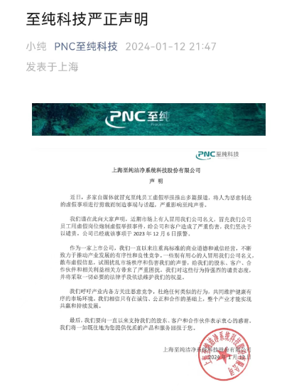 网传文件显示,至纯科技已就此事向上海市公安局闵行分局塘湾派出所报案。