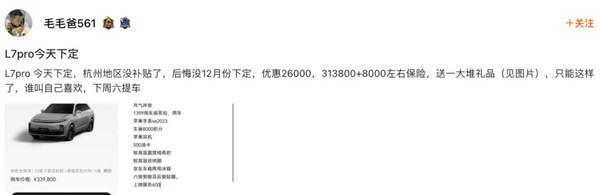 此外,理想L7和L8的Max车型还免费赠送21英寸轮圈,如果不配置该轮圈,可以再降5000元。理想L9则全系赠送电动踏板,如果不配置,也可以再降5000元。将上述的优惠幅度计算在内,此次理想汽车提供的优惠最高逼近了5万元人民币。目前理想汽车并未公布具体优惠金额,不同版本车型有不同的优惠幅度,各城市地区之间的优惠幅度也大有不同。
